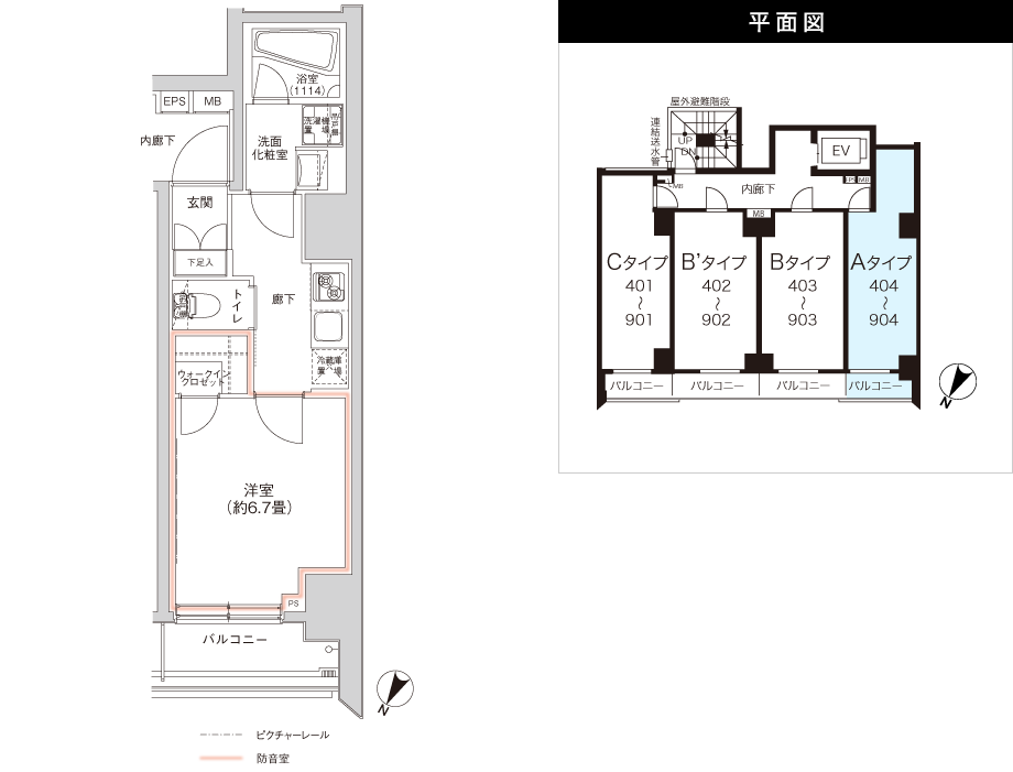 専有面積/ 26.82㎡、バルコニー面積/ 3.41㎡