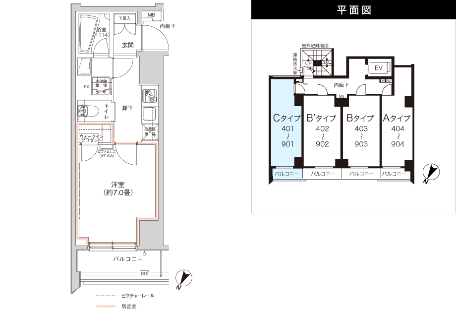 専有面積/ 25.45㎡、バルコニー面積/ 3.41㎡